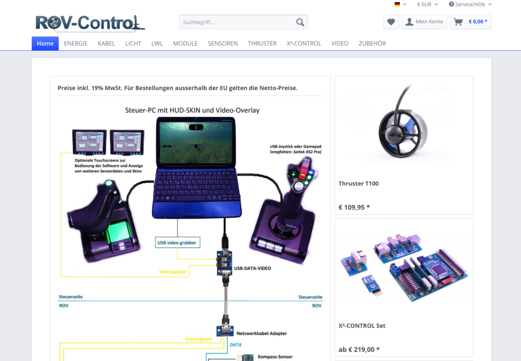 ROV-Control, based in Wuppertal, Germany, is the developer of a modular control system for ROVs. The system is compatible with many types of vehicles, ranging from small diving robots to complex diving systems. They design and build a number of sensors and electronic components as well.