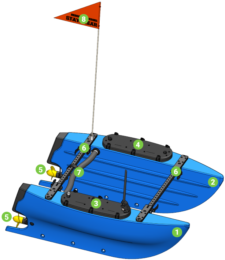 Your BlueBoat must be fully assembled and the software must be set up before you operate. If you have not assembled your BlueBoat, please see the BlueBoat Assembly guide. If you have not completed the software setup, see the BlueBoat Software Setup guide.