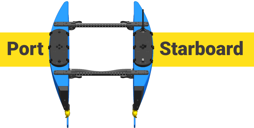 In this guide and other BlueBoat guides, we will refer to the left side and right sides of the boat using the nautical terms “port” and “starboard”. If you imagine you are on the BlueBoat, facing the front of the boat, the left side is the port side and the right is the starboard side.