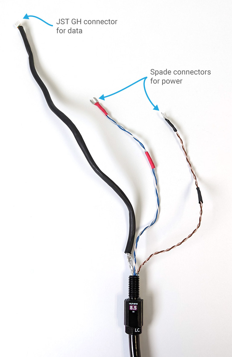 To install the penetrator, cut the RJ45 connector from the end of the cable and strip the jacket to length, leave enough conductor length to connect everything inside the enclosure. After the WetLink Penetrator is installed, install a 4-position JST GH connector on the twisted pairs used for data (green/green-white, orange/orange-white) to connect them directly to the Ethernet Switch. We have the tools to crimp the connector onto the wires directly, but the Ethernet Switch also comes with spare extension cables that can be used to solder splice the connector if you don’t have crimping tools available.