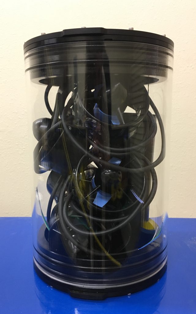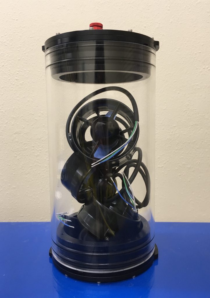 The 6″ Series enclosures are rated to 65m and the 8″ Series enclosures are rated to 40m. We decided to measure their capacity by stuffing them with one of our favorite things: T100 Thrusters. You may also be able to spy a 3″ aluminum battery tube inside the 8″ enclosure.