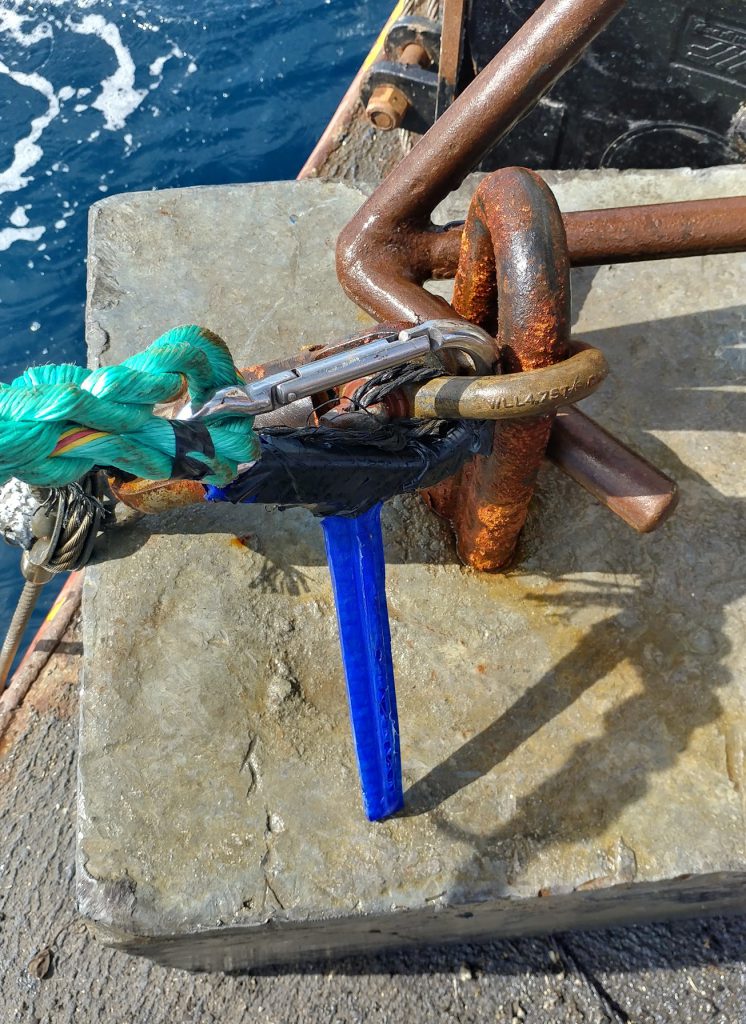 The crew was determined to retrieve the weight, and embarked on a second mission a few days after the initial recovery effort. This time around, the crew used the boat’s anchor to better hold their position and added weight to the floating line. Mother nature was also on their side, as the overall water conditions were much better – a very low current and sea state would make a successful recovery much more likely. After locating the weight again, the ROV pilot managed to capture the weight on the first try. The weight was then pulled to the surface as planned. Nice job, guys!