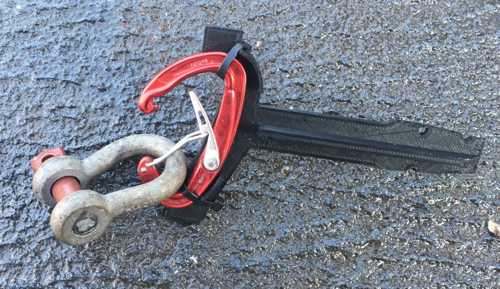 A BlueROV2 with the new Low-Light USB Camera was fitted with a PVC tube that served as a receiver for a holder for the spring-loaded carabiner, which would attach to the target.